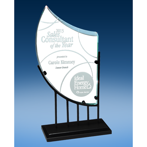 • Art Glass Sculpture with Metal Base Stand