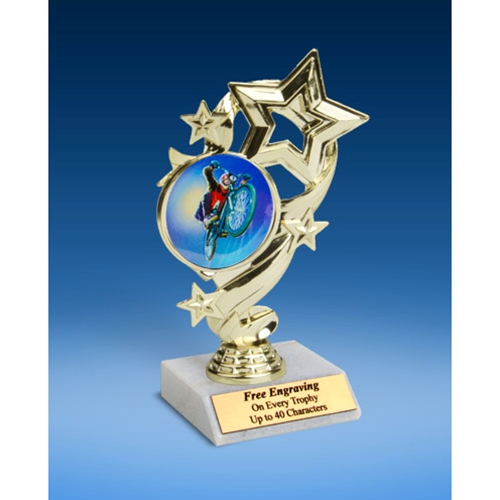 Categories: 3 Lines of Engraving, 6" Star Ribbon Trophies, Cycling/BMX, Trophies, Video - Mylar Trophies