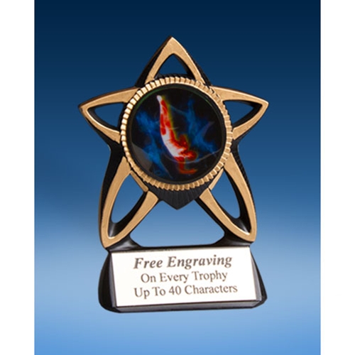 This nice 6″ tall resin, accepts a 2″ graphic decal of your sport/activity.