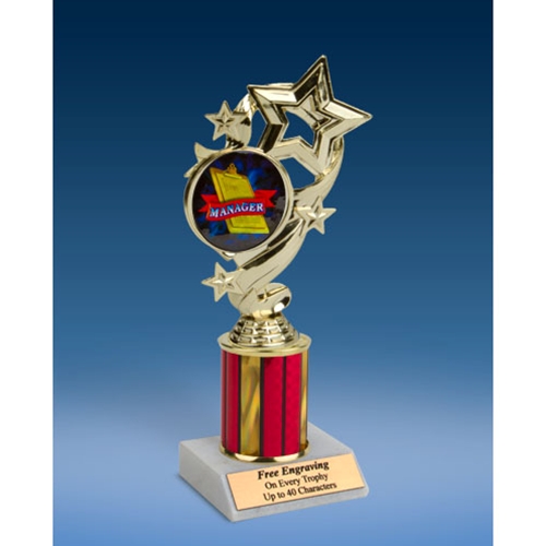 Categories: 3 Lines of Engraving, 8" Star Ribbon Trophies, Coach/Manager, Trophies, Video - Mylar Trophies