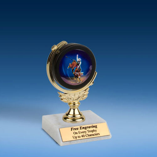 • Soft Spinner Trophies are made of squeezable foam.  Each Trophy has a great looking colored graphic of your sport/hobby on one side.  Add a second colored graphic (one for each side of the spinner) for an extra $1.00 .
