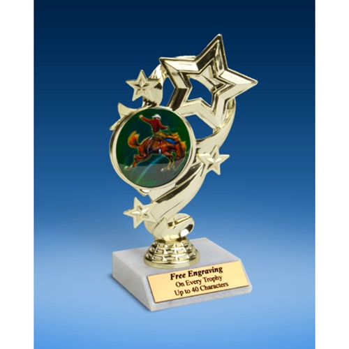 Categories: 3 Lines of Engraving, 6" Star Ribbon Trophies, Equestrian, Trophies, Video - Mylar Trophies