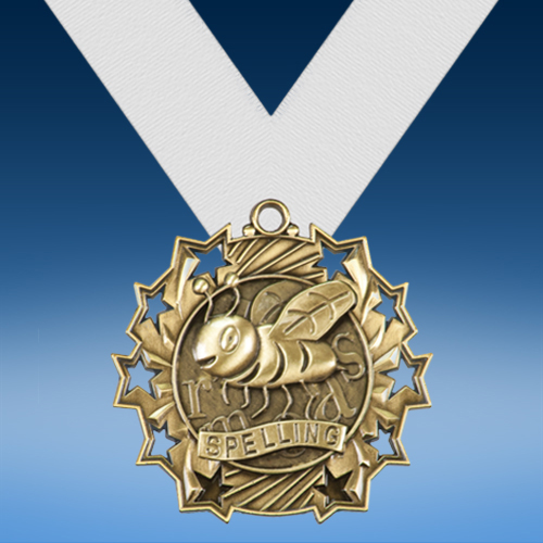 Award spelling bee champs with our Spelling Bee Ten Star 3D Medal! This large medal award features a 3D bee and a “spelling” banner within a 10-star border. Available in gold, silver, or bronze finishes. Personalize the reverse side of this award with error-free engraving. Display this medal on the ribbon color of your choice for beautiful presentation. Perfect for recognizing spelling bee achievements!