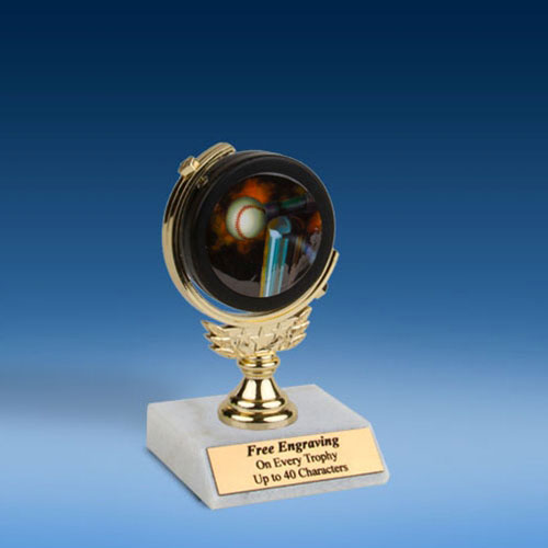 - Soft Spinner Trophies are made of squeezable foam. Each Trophy has a great looking colored graphic of your sport/hobby on one side. Add a second colored graphic (one for each side of the spinner) for an extra $1.00 .